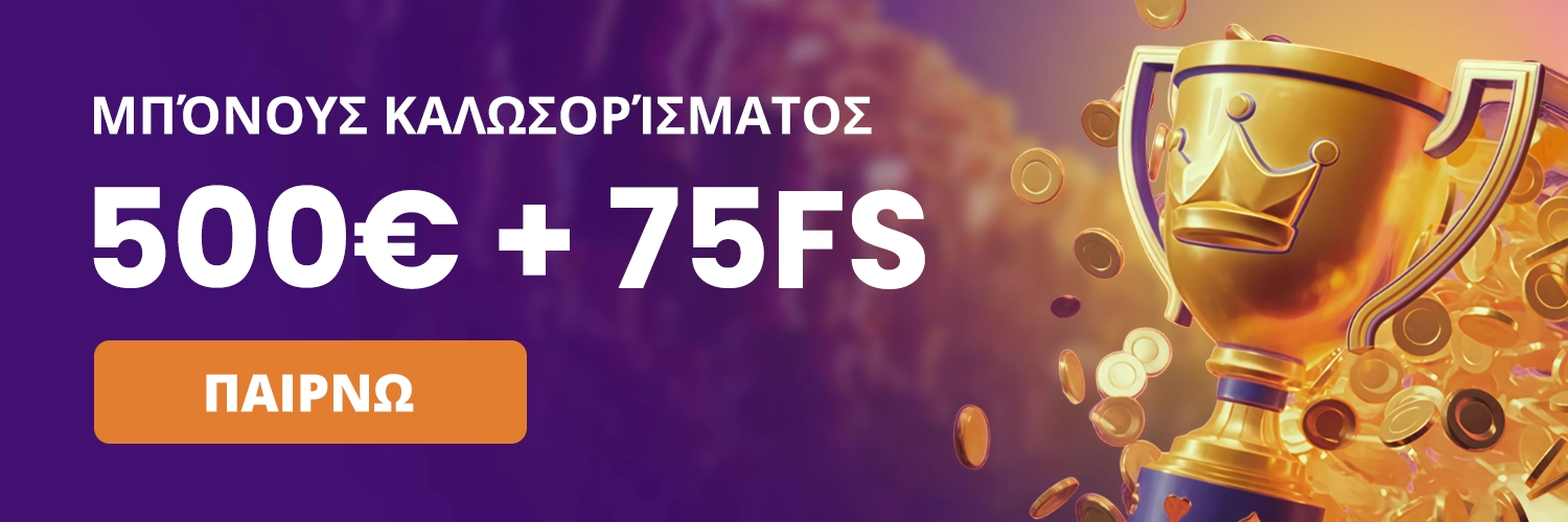 | Μπόνους Καλωσορίσματος Καζίνο | 100% έως €500 + 25 δωρεάν περιστροφές. | Μόνο για νέους παίκτες. |
